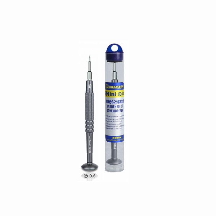 پیچ گوشتی Mechanic iMini 0.6 – پیچ گوشتی ها از نخستین و اساسی ترین ابزار تعمیرات هستند. و هیچ کس مثل یک تعمیرکار حرفه ای ضرورت داشتن یک پیچ گوشتی خوشدست را درک نمی کند. بدنه استنلس استیل این محصول گواهی دوام بسیار بالای این محصول است. آج های تراشیده شده در بدنه این پیچ گوشتی از سر خوردن پیچ گوشتی در دست جلوگیری می کنند. سر این پیچ گوشتی به شکل سه پر با سایز 0.6 است که برای گوشی های مدل آیفون 7 به بالا کاربرد دارد. در انتهای این پیچ گوشتی مهره ماسوره ای وجود دارد که در کاربردی بودن آن تاثیر به سزایی دارد این مهره با پهنای مناسبی که دارد به راحتی در کف دست می نشیند و در هنگام کار کردن با پیچ گوشتی ثابت می ماند و چرخشی روان برای پیچ گوشتی ایجاد می کند.