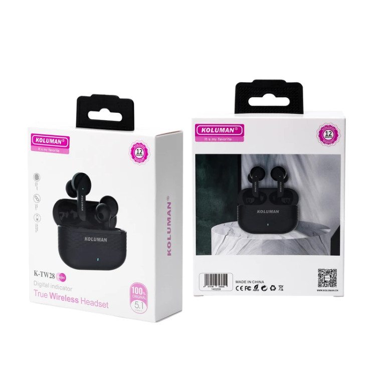 محصول جدید از کمپانی کلومن ( KOLUMAN) با نام ( K-TW28) معرفی شد . این محصول از سری هدفون های بی سیم کمپانی کلومن است که با توجه به امکانات و طراحی مینیمال خود مورد توجه قرار گرفت . این ایرپاد در کنار کیفیت ساخت فوقالعاده بالای خود، به بلوتوث نسخه 5.1 مجهز شده است تا شاهد سرعت بسیار بالای آن در زمینهی برقراری اتصال آن از طریق بلوتوث باشیم . فناوری کنترل لمسی برای پاسخگویی به تماس و همچنین پخش و توقف موسیقی بر روی گوشی های این هدفون قرار گرفته است . از این هدفون بی سیم برای استفاده از دستیار صوتی نیز میتوان استفاده کرد . باتری به کار رفته در این هدفون بی سیم از نوع لیتیوم پلیمری ست .این هدفون قابلیت کم و زیاد کردن صدای موسیقی از روی گوشی ها را برایتان فراهم میکند