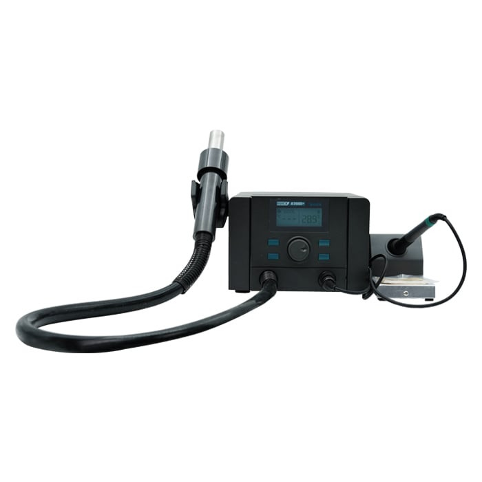 هیتر کوییک +8786D – یکی دیگر از محصولات جدید شرکت چینی Quick است. هیتر هویه 8786 دی پلاس دارای سیستم خواب اتوماتیک هوشمند و طراحی هوای سرد برای جلوگیری از خرابی قطعات داخلی و گرمایشی دستگاه میباشد. این محصول دارای صفحه نمایش دیجیتال LCD، برای نمایش میزان دما و خروجی باد دستگاه است. کالیبراسیون دیجیتال عملکرد ذخیره سازی داده در سه سطح یکی دیگر از ویژگی های اصلی دستگاه میباشد. در طراحی این محصول از دسته هویه کوییک TS1100 و دسته هیتر 859D Plus استفاده شده است.