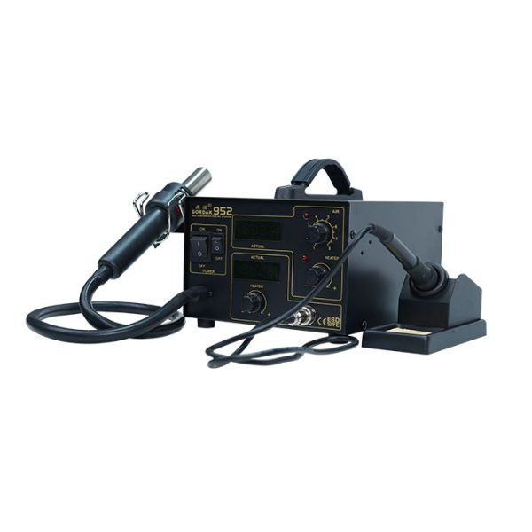 هیتر و هویه GORDAK 952 – یکی از ابرارآلات باکیفیت در تعمیرات موبایل به شمار میآید. این محصول توان 330 وات و قابلیت تنظیم دما از 100 الی 500 درجه را دارد. هیتر هویه گرداک مدل 952 با سیستم خواب خودکار و سرعت باد خروجی 24 لیتر در دقیقه یک محصول مناسب برای تعمیرکاران است. همچنین یک صفحه نمایش LCD روی محصول قرار دارد که جزئیات دما و تنظیمات دستگاه را به کاربر نشان میدهد. طراحی دسته این هیتر و هویه به صورتی است که کاربر در استفادههای طولانی خسته نمیشود. کمپانی GORDAK از قدیمیترین برندهای تولید و عرضه کننده ابزار تعمیرات موبایل است. هیتر و هویه گرداک 952 یکی از باکیفیتترین و بادوامترین محصولات در میان هیتر هویههای دیجیتالی میباشد.