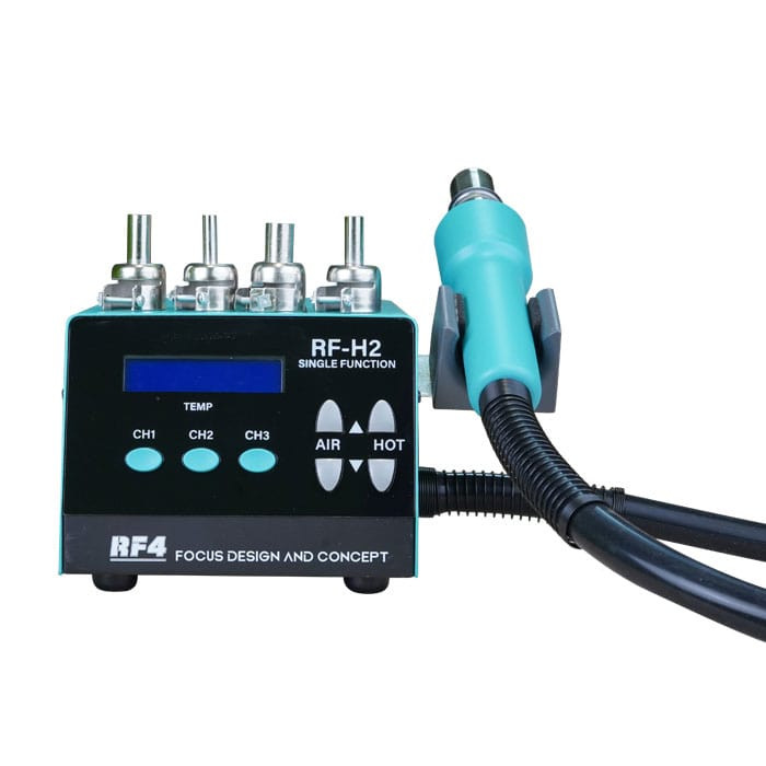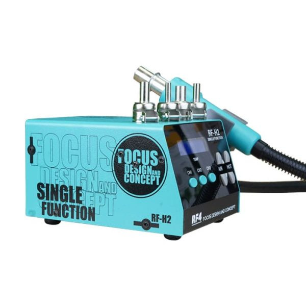 هیتر RF4 RF-H2 یکی از قابلیتهایی که امروزه در هیترهای نسل جدید وجود دارد، سیستم خواب هوشمندی است که داخل دستگاه تعبیه شده است که در اصطحلاک و مصرف برق صرفه جویی شود و شرکت RF4 نیز از این قاعده مستثنی نیست. این سیستم بصورت هوشمند طراحی شده تا کاربر با برداشتن تفنگی هیتر آن را در حالت روشن قرار دهد و در مواقعی که دسته تفنگی روی نازل قرار میگیرد روی حالت آماده به کار و خواب موقت برود. از دیگر قابلیتهای بارز دستگاه RF-H2 تنظیم دما، قابلیت چرخش باد ملایم و … است. که این دستگاه را به نسبت هیترهای هم رده خود متمایز و برتر میکند. روی این دستگاه یک صفحه نمایش دیجیتالی جهت نمایش وضعیت کار آن تعبیه شده و با دکمههای کنترلر میزان دما و فشار باد قابل تنظیم است. محدوده دمای این دستگاه 100 – 400 درجه سانتیگراد است.این دستگاه دارای سه کانال برای ذخیره سازی دما است.