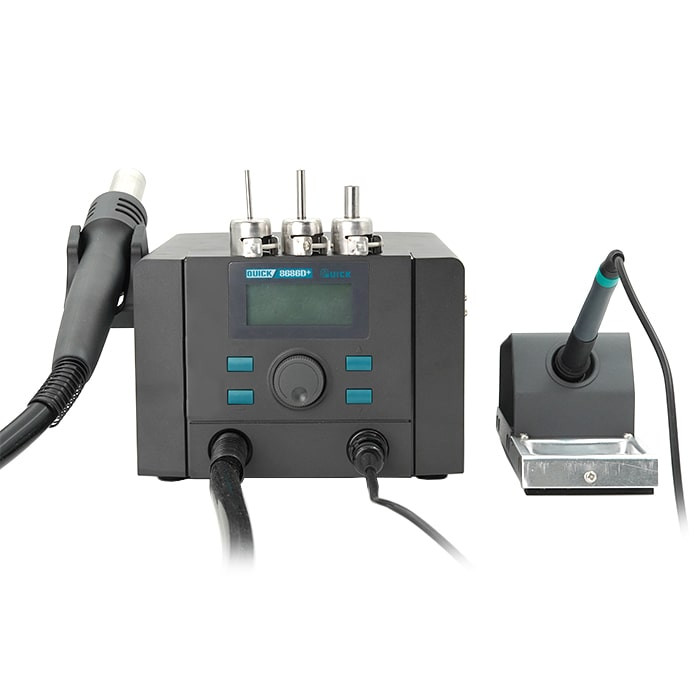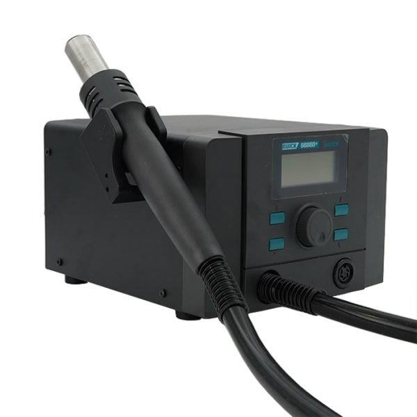 هیتر کوییک 8686D پلاس – به همراه هویه یک دستگاه 2 در 1 جدید شرکت چینی QUICK است که دارای کیفیت بالا و طراحی جدید میباشد. دسته هویه کوییک 8686 دی پلاس همانند مدل پرطرفدار TS1100 کوییک و دسته هیتر آن از مدل K8 میباشد. قدرت این دستگاه 1000 وات با قدرت و راندمان بالا است. استفاده از موتور بدون برس (Brushless) در این محصول باعث کاهش نویز و صدا در دسته هیتر شده که این ویژگی باعث افزایش طول عمر دستگاه نیز میشود. صفحه نمایش هیتر هویه کوییک از نوع ال سی دی با وضوح و کیفیت بالا برای نمایش میزان درجه حرارت و باد دستگاه است. یکی دیگر از ویژگی های مهم هیتر 8686D plus سیستم خواب خودکار دسته هیتر و خنک کننده سریع آن است که در استفاده طولانی مدت باعث افزایش طول عمر دستگاه میشود.