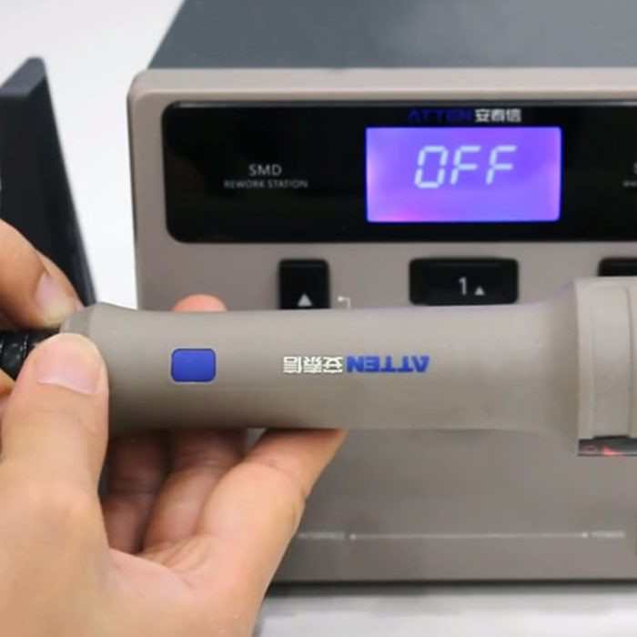 هیتر ATTEN آتن ST-862D – تعمیرکاران برد گوشی موبایل در تعویض قطعات معیوب از دستگاه هیتر استفاده فراوانی می کنند . عملکرد هیتر به این صورت است که فن موجود در داخل خود دستگاه یا دسته دستگاه باد تولید می کند و باد تولید شده از المنت حرارتی قرار گرفته در دسته دستگاه عبور می کند و داغ می شود و پس از خروج از نازل به نقطه مورد نظر دمیده می شود . به این صورت قطعه مورد نظر گرم شده و اتصالات لحیمی آن ذوب می شود و می توان آن را به راحتی از برد جدا کرد .