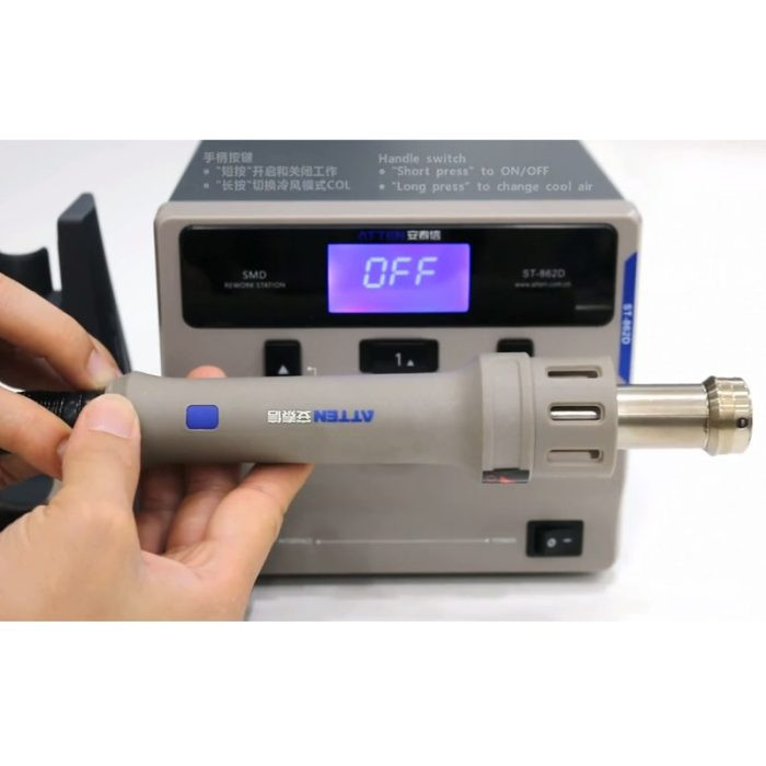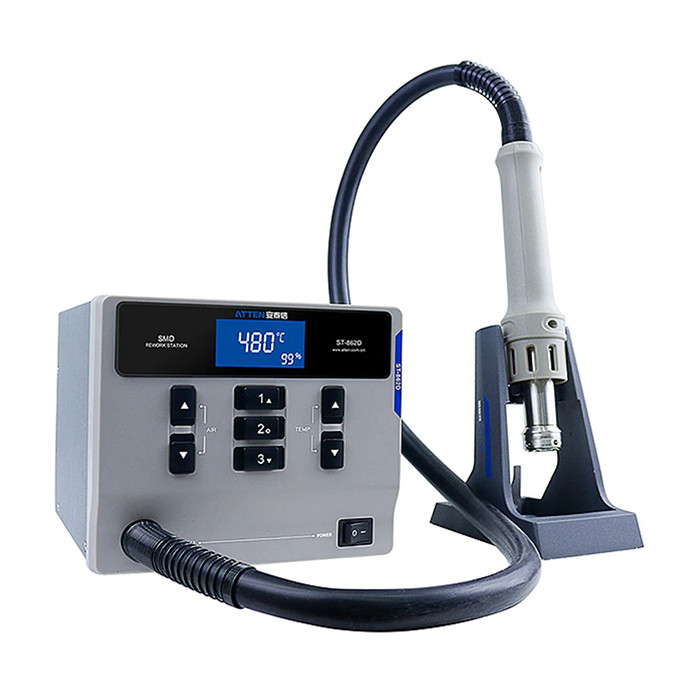 هیتر دیجیتال ST-862D با برند ATTEN یکی از بهترین دستگاه های موجود در بازار است . این هیتر ، دارای سه کلید دسترسی برای تغییر حجم و درجه حرارت هوای خروجی بین 100 تا 480 درجه سانتی گراد می باشد. یکی دیگر از قابلیت های این هیتر که می توان به آن اشاره کرد ، گردش هوای فوق العاده قوی و حالت خواب خودکار آن است. این هیتر دارای سیستم خنک کننده دیجیتالی می باشد که می تواند به عمر المنت حرارتی هیتر اضافه کند و از دسته نیز محافظت کند.