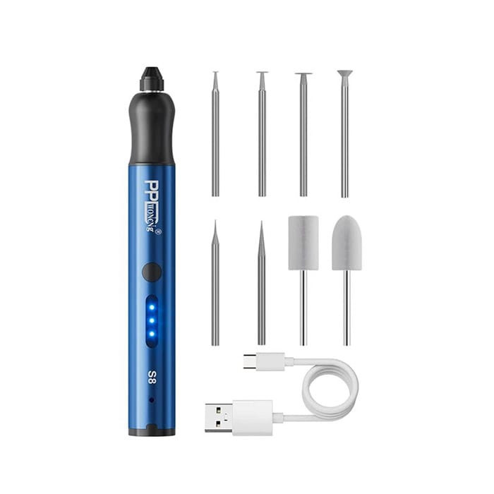 فرز مینیاتوری PPD S8 – یک ابزار کاربردی برای تعمیرات موبایلاست که وظیفه پاک کردن چسب از بردها را دارد. این محصول شامل 8 سری متفاوت بوده که هر کدام از آنها کاربردهای متفاوتی دارند. قدرت مصرفی فرز مینیاتوری 10 وات بوده و تعمیرکاران میتوانند، سرعت این فرز مینیاتوری بین 10000، 15000 یا 20000 دور بر ثانیه تنظیم کنند.