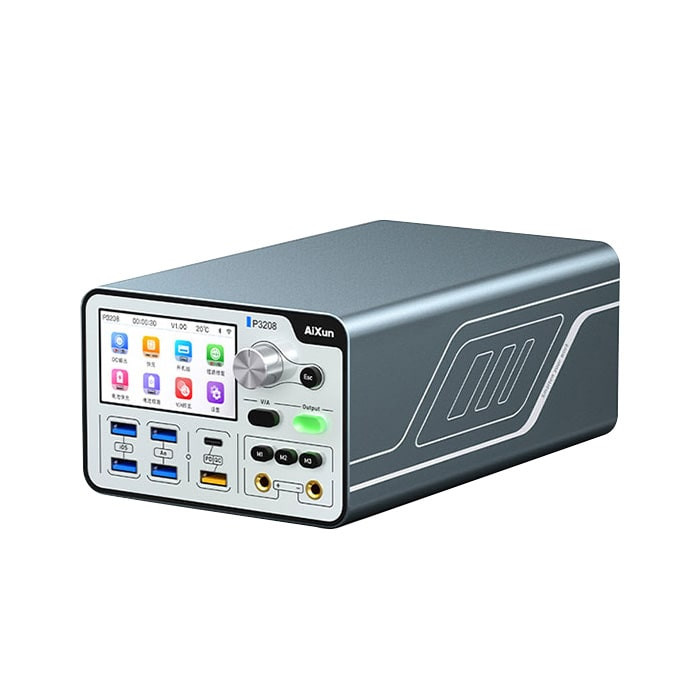 منبع تغذیه چند منظوره AIXUN P3208 – از جمله ابزارهای ضروری در حوزه تعمیرات موبایل است که وظیفه اصلی آن دریافت انرژی الکتریکی از یک منبع انرژی و تبدیل کردن آن به بسامد، جریان و ولتاژ مناسب برای تغذیه بار مصرفی است. منبع تغذیه P3208 دارای خروجی فست شارژ Type-A/Type-C است و از پروتکل های PD/QC پشتیبانی میکند. شارژدهی این محصول به گونه ای است توان شارژ 60 وات برای تک کانال و همچنین توان شارژ 30 وات برای دو کانال است.