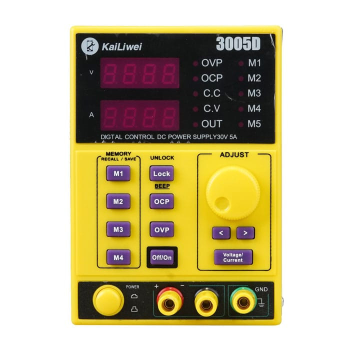 منبع تغذیه Kailiwei 3005D – منبع تغذیه 30 ولت 5 آمپر 3005D یکی از جدیدترین محصولات برند کایلیوی هست که از لحاظ کیفیت بسیار عالی میباشد و از لحاظ ساختاری و فنی هم پیشرفت فوق العاده ای داشته است. این منبع تغذیه DC که دیجیتالی است باعث میشود به راحتی با استفاده از نمایشگر مقدار ولتاژ و جریان را بررسی کنید که در تعمیر موبایل کیفیت کاری بهتری داشته باشید و در امر عیب یابی هم بسیار موثر است که باعث میشود سریع تر مشکل تلفن همراه یا دستگاه مشکل دار را پیدا کنید و ایراد آن را برطرف کنید.