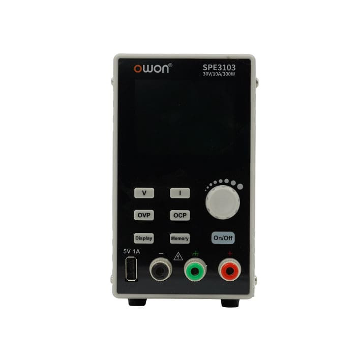 منبع تغذیه Owon Spe3103 – یکی از مهمترین ابزار ها و تجهیزاتی که در تعمیرات موبایل برای عیب یابی و رفع اشکال مورد استفاده قرار میگیرد، منبع تغذیه هست. Owon SPE3103 یک منبع تغذیه تک کاناله DC با تمام ویژگی های معمولی مانند حفاظت از ولتاژ بیش از حد (OVP) و حفاظت از جریان بیش از حد (OCP) است. این محصول دارای صفحه نمایش 2.8 اینچی LCD با وضوح بالا است که پارامترهای تنظیمی، محدود و لحظه ای را نمایش می دهد. SPE3103 به شما این امکان را می دهد که ولتاژ و جریان را در لحظه با استفاده از نمودارهای روی نمایشگر نظارت کنید و همچنین می توانید حداکثر 4 گروه خروجی را ذخیره و ویرایش کنید. منبع تغذیه را می توان به یک کامپیوتر میزبان با USB متصل کرد و از طریق SCPI ارتباط برقرار کرد.