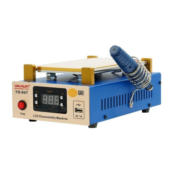 سپراتور یاکسون YX-947 – محصول شرکت YAXUN که همراه با ریموور چسب OCA عرضه میشود، دارای کیفیت بالا با صفحه 7 اینچی از جنس آلیاژ برنج میباشد که همین امر باعث سریعتر داغ شدن صفحه آن میشود تا بتواند در کمترین زمان ممکن چسب های بین گلس و ال سی دی را نرم کند. برای کارهای تعمیراتی مربوط به گلس داشتن ابزار هایی همچون سپراتور ضروری بوده که کار شما را راحت تر و سریع تر میکند. دمای خروجی این دستگاه تا 120 درجه سانتی گراد میتواند برسد و از قابلیت گرمایش سریع برخوردار است.