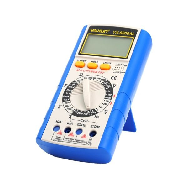 مولتی متر یاکسون 9208AL – قابلیت اندازهگیری چهار پارامتر مختلف اهم، ولت، آمپر و درجه حرارت قطعات موبایل را دارد. این مولتی متر ضریب خطای بسیار کم و دقت اندازهگیری بسیار بالایی دارد که آن را به یک محصول بسیار باکیفیت تبدیل کرده است. مولتی متر 9208AL دارای صفحه نمایش LCD بزرگ و قابل خواندن است که به کاربر اطلاعات دقیق را درباره مقادیر اندازهگیری شده نشان میدهد.