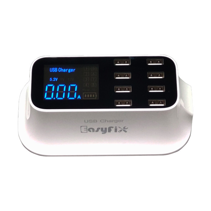 مولتی شارژر ایزی فیکس EasyFix مدل EF-A19 – یک دستگاه الکترونیکی است که میتواند همزمان دو یا تعداد بیشتری باتری را شارژ کند. این دستگاه به طور کلی برای شارژ باتریهای قابل شارژ مانند باتریهای لیتیوم یون، لیتیوم پلیمر و نیکل کادمیم استفاده میشوند.این محصول قابلیت شارژ همزمان 8 دستگاه را دارد. شارژر باتری وسیلهای برای تزریق انرژی به درون باتریهای قابل شارژ است. این کار را توسط تزریق جریان الکتریکی به درون باتری صورت میگیرد. جریان شارژ به تکنولوژی ساخت و همچنین حجم باتری مورد نظر جهت شارژ بستگی دارد. به عنوان مثال جریانی که برای شارژ یک باتری ۱۲ ولت خودرو استفاده میشود با جریان مورد نیاز برای باتری تلفن همراه بسیار متفاوت است.