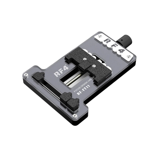 فیکسچر RF4 RF-FT11، یک ابزار حرفهای و با کیفیت 100% اورجینال برای تعمیرات دقیق الکترونیکی است. این گیره با طراحی شیشه سکوریت مقاوم در برابر حرارت بالا، مناسب برای انواع برد و آیسیهاست. ساختار مثلثی ثابت آن به همراه طراحی اریب داخلی فکها، به مادربرد ثبات فوقالعادهای میدهد و از حرکت ناخواسته جلوگیری میکند. این گیره دارای سه فاصله قابل تنظیم و سه عدد گیره برای نگهداری ایمنتر است و به پد ضدلغزش مجهز شده تا در طول کارکرد کاملاً ثابت بماند. وزن این گیره 342 گرم و ابعاد آن 148.5 در 100 میلیمتر است که آن را به انتخابی مناسب برای نیازهای دقیق الکترونیکی تبدیل میکند.