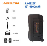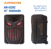 اسپیکر بلوتوثی آرسون (ARSON) مدل AN-1225C اسپیکر قابل حمل دارای باتری داخلی با توان 4500mAh میباشد و می توان آن را شارژ کرد و به مکان دلخواه خود ببریم، به همین دلیل هم بسیار پرطرفدار هستند. کمپانی های معتبر زیادی در تولید اسپیکر های قابل حمل در رقابت هستند. اسپیکر بلوتوثی مدل «AN-1225C» یک اسپیکر 12 اینچی می باشد و دارای نورپردازی بسیار جذابی است. شما می توانید با اتصال میکروفون وایرلسی که به همراه این محصول می باشد صدای خود را از اسپیکر بشنوید. همچنین می توانید یک موزیک بی کلام پخش کنید و خودتان به عنوان یک خواننده شعر مورد علاقه خود را بخوانید. مدت زمان مورد نیاز برای شارژ کامل این محصول 5 تا 8 است و پس از آن قادر است به مدت 2 تا 3 ساعت موسیقی پخش کند. در قسمت کناری این اسپیکر، کلید های مدیریت صدا، کلید «on/off»، و ورودی های کارت حافظه، فلش و «AUX» قرار دارند. همچنین این محصول دارای قابلیت TWS (دو دستگاه که امکان اتصال به بلوتوث داردند، با یکدیگر جفت شوند.) دارد. قابلیت TWS در اسپیکر این امکان را فراهم میسازد تا امکان شنیدن موسیقی به صورت استریو را بتوان تجربه کرد به نحوی که کانالهای صوتی چپ و راست به طور کامل از یکدیگر مجزا باشند.