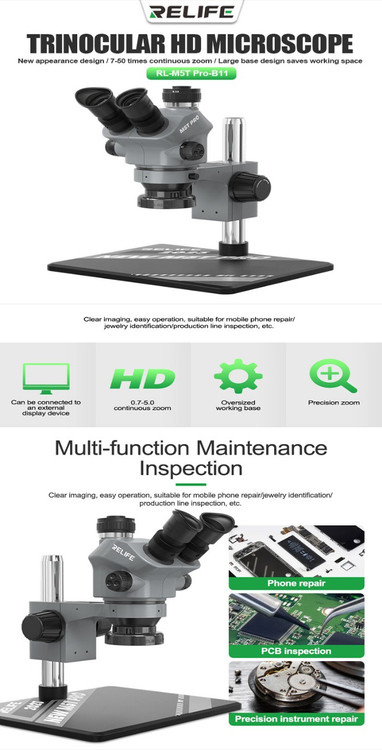 لازم به ذکر است که یک عدد LED نیز روی لنز کار شده که در صورت لزوم نور بسیار قوی را بازتاب دهد که برای کار روی قطعات حساس و یا کار محیطهای کم نور بسیار مناسب است اگر به دنبال بهترین میکروسکوپ ممکن برای تعمیر تلفن همراه، شناسایی جواهرات یا بازرسی خط تولید هستید،RELIFE M5T PRO B11 گزینه بهتری است.