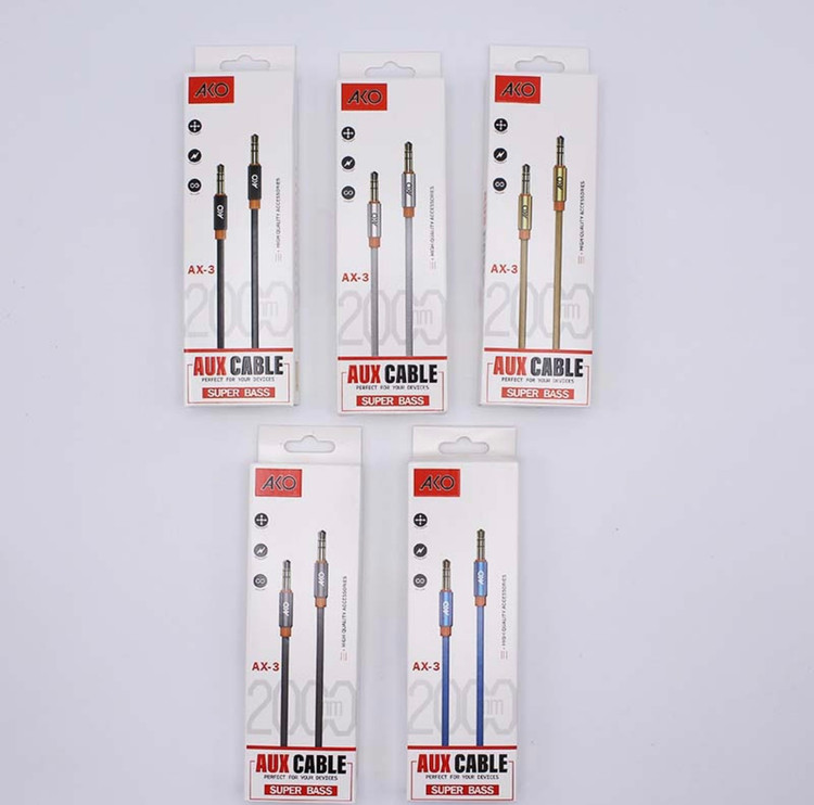 شرکت آکو ، یک شرکت مدرن تولید کننده لوازم جانبی تلفن همراه مانند هندزفری ، هدست ، بلوتوث ، اسپیکر ، هدفون ، پاوربانک ، شارژر فندکی ، کابل های انتقال دیتا ، شارژرهای دیواری تی وی باکس و کابل های انتقال صدا است که دارای محصولاتی با درجه کیفیت عالی و غیرقابل مقایسه با دیگر محصولات تولید شده از مبدا کشور چین است . جنس کابل AUX آکو مدل { AX-3} از روکش داخلی فلزی و روکش بیرونی کنفی طراحی شده است ، همچنین طول کابل آن یک متر و در هر 2 سمت دارای جک 200 سانتی متری میباشد . و نکته قابل توجه در طراحی { AX-3 } ، جنس سوکت های آن است که از فلز هستند