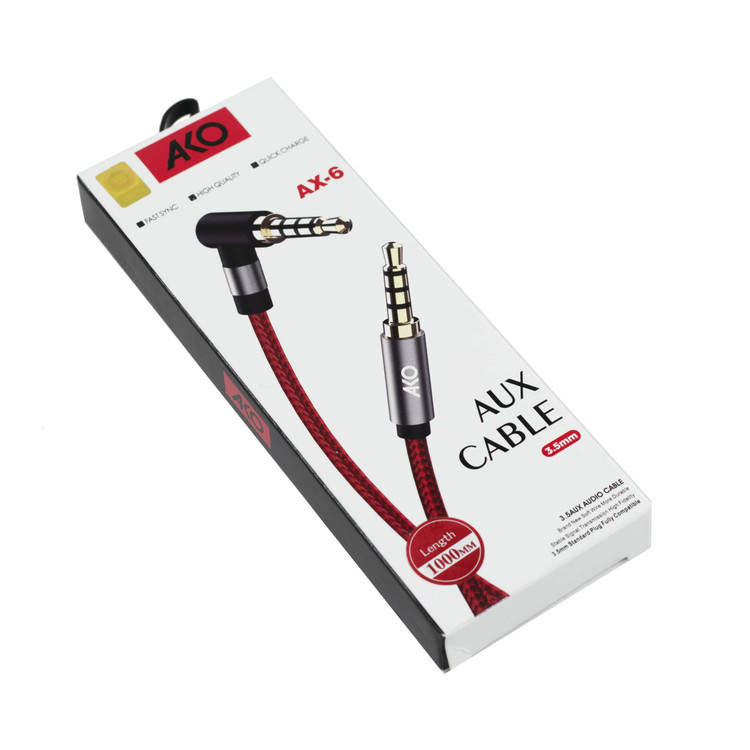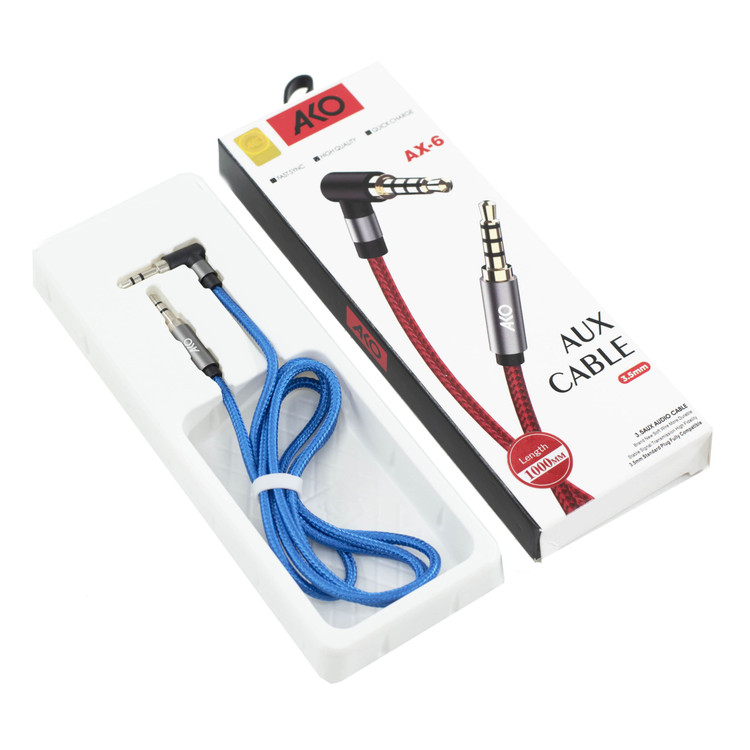 شرکت آکو ، یک شرکت مدرن تولید کننده لوازم جانبی تلفن همراه مانند هندزفری ، هدست ، بلوتوث ، اسپیکر ، هدفون ، پاوربانک ، شارژر فندکی ، کابل های انتقال دیتا ، شارژرهای دیواری تی وی باکس و کابل های انتقال صدا است که دارای محصولاتی با درجه کیفیت عالی و غیرقابل مقایسه با دیگر محصولات تولید شده از مبدا کشور چین است . جنس کابل AUX آکو مدل { AX-6} از روکش داخلی فلزی و روکش بیرونی کنفی طراحی شده است ، همچنین طول کابل آن یک متر و در هر 2 سمت دارای جک 200 سانتی متری میباشد . و نکته قابل توجه در طراحی { AX-6 } ، جنس سوکت های آن است که از فلز هستند