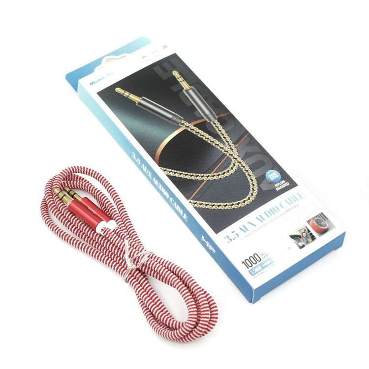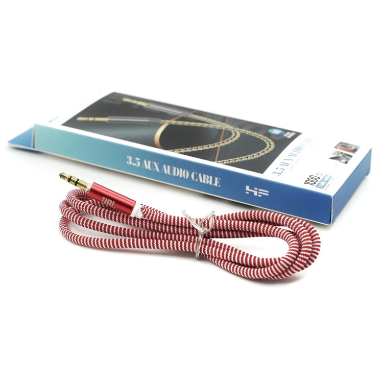 کانکتور از نوع جک ۳.۵ میلی متری صدا، ساخته شده از جنس فلز مقاوم در برابر آسیب های فیزیکی کابل به طول 1 متر با روکش از جنس الیاف به هم بافته شده کنفی مقاوم در برابر کشش و پارگی مناسب برای برقراری ارتباط بین دستگاه های مجهز به درگاه AUX