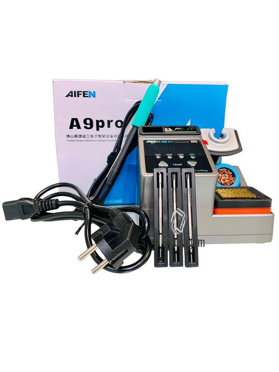 هویه AIFEN A9 PRO با توان خروجی 120 وات یکی از هویه های قدرتمند و کاربردی شرکت AIFEN میباشد و دارای سه کانال ذخیره سازی دما برای انجام کارهای مختلف میباشد؛ همچنین این قابلیت را دارد که در دو الی سه ثانیه به دمای مورد نظر تنظیم شده توسط کاربر برسد.