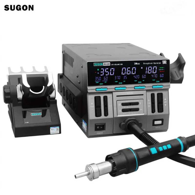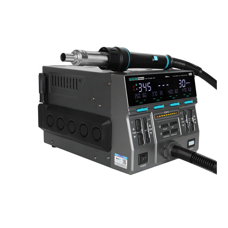 هیتر 8650 3MODE سوگون – وسیلهای کاربردی در ابزارآلاتتعمیرات موبایل است. این دستگاه دارای سه حالت گرمایش است، حالت ملایم (gentle mode) حالت متوسط (general mode) و حالت سریع (rapid mode). همچنین این محصول دارای چهار دکمهی ذخیره سازی دما روی دسته جهت راحتی و عملکرد بهتر کاربر است. این محصول دارای صفحه نمایشگر LED است که شما میتوانید به طور همزمان دمای چهار کانال را مشاهده کنید. هیتر سوگون دارای هشت عدد سری نازل برای کاربردهای مختلف است. دکمههایی روی دستگاه تعبیه شده است که شما قادر هستید دما را بصورت تک حالته و یا چند حالته افزایش و کاهش دهید.