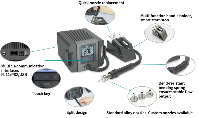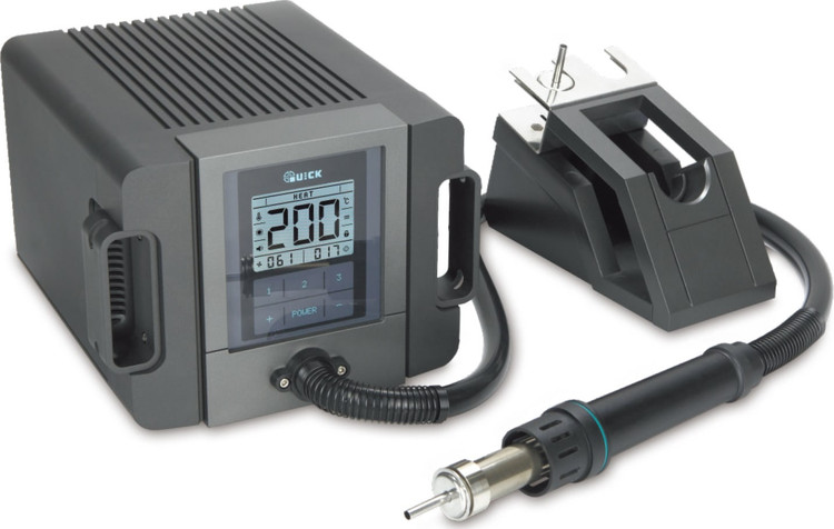 کوییک QUICK 1300A – هیتر یکی از پرکاربردترین و مهمترین ابزارآلات تعمیرات الکترونیک مانند تعمیرات سخت افزاری گوشی موبایل میباشد. انتخاب یک دستگاه هیتر خوب از الویتهای مهم تعمیرکاران موبایل میباشد. هیتر TR1300A یک دستگاه هوشمند دارای کیفیت و دقت بالا است که برند آن QUICK میباشد. برند کوییک یکی از معروفترین تولیدکنندههای ابزار آلات تعمیرات گوشی موبایل است که محبوبیت بالایی در بین تعمیرکاران دارد. این دستگاه به صورت حرفهای میزان باد و دما را کنترل میکند و برای انجام تعمیرات حساس که نیاز به دقت بالا دارند به کار میرود.