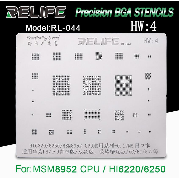 قیمت و خرید شابلون آی سی RELIFE RL-044 HW4 HI6220/6250/MSM8952 CPU BGA stencil/0.12MM