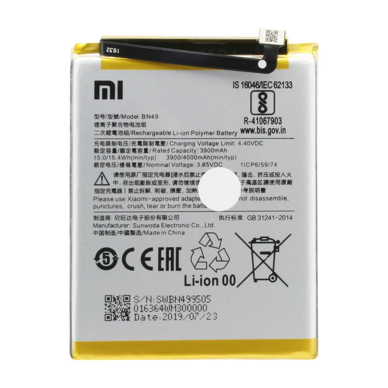 مشخصات ولتاژ باتری ۳.۸۵ ولت ولت مشخصات دیگر این باتری از نوع لیتیوم پلیمر است گوشی های سازگار Xiaomi Redmi ۷A مناسب برای گوشیهای برند Xiaomi